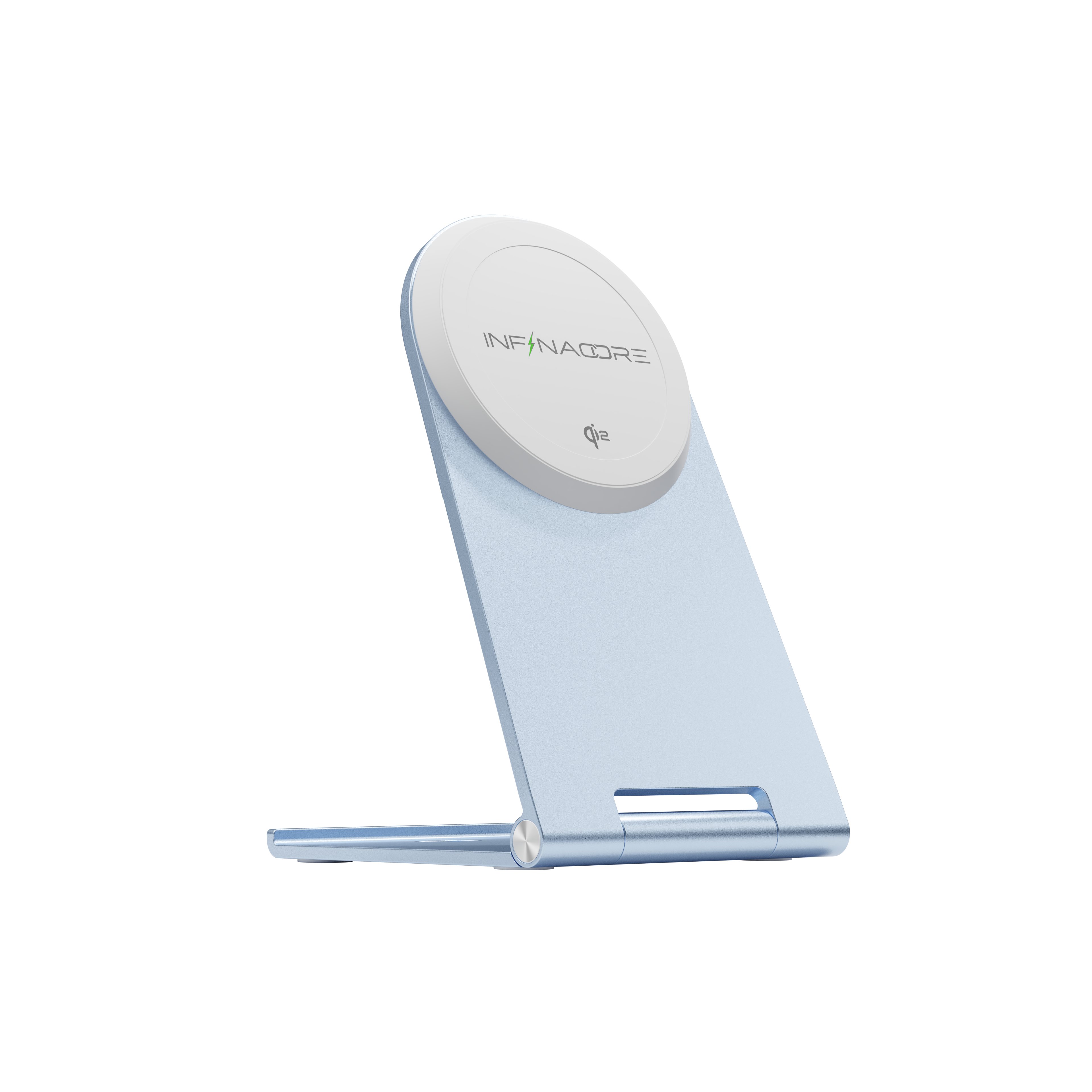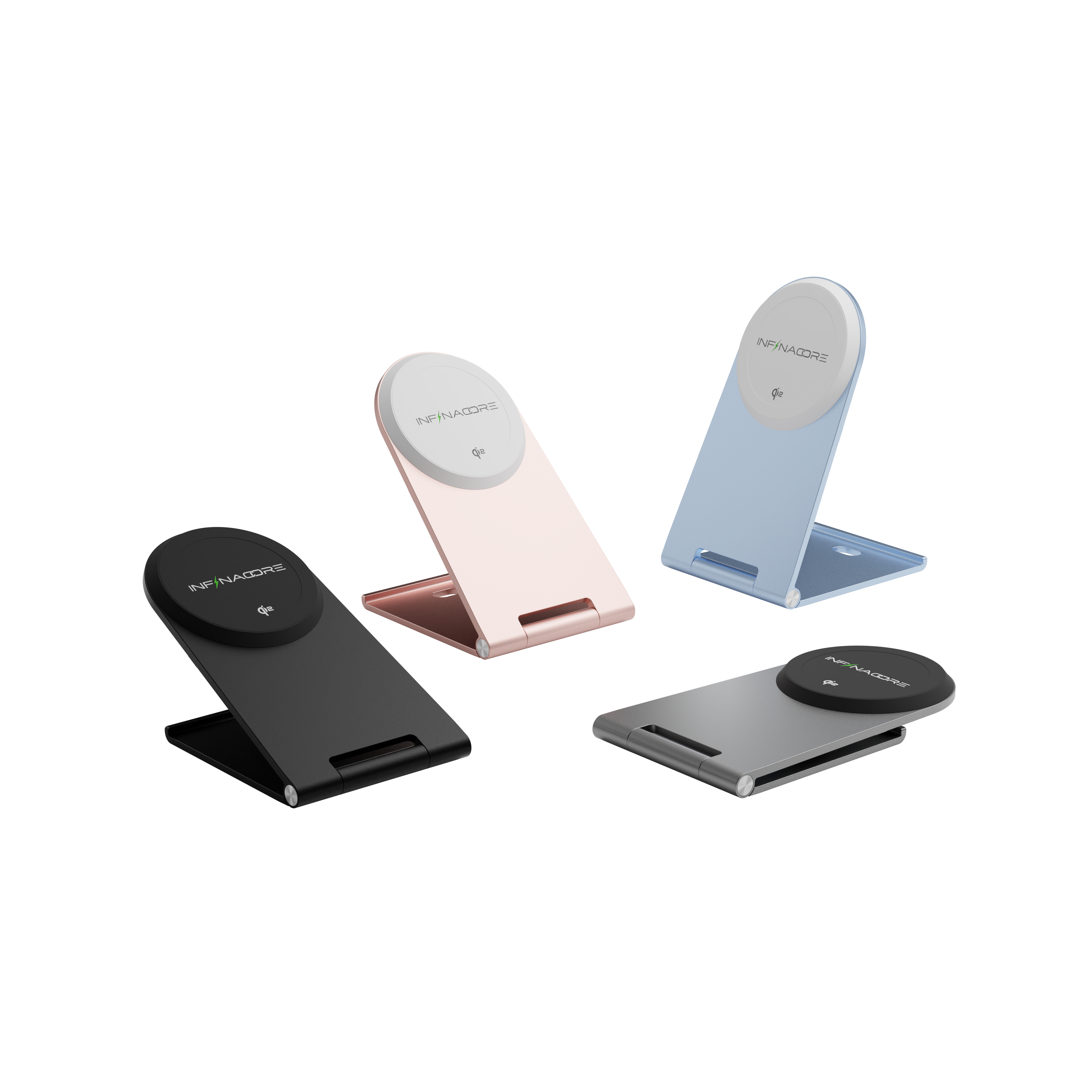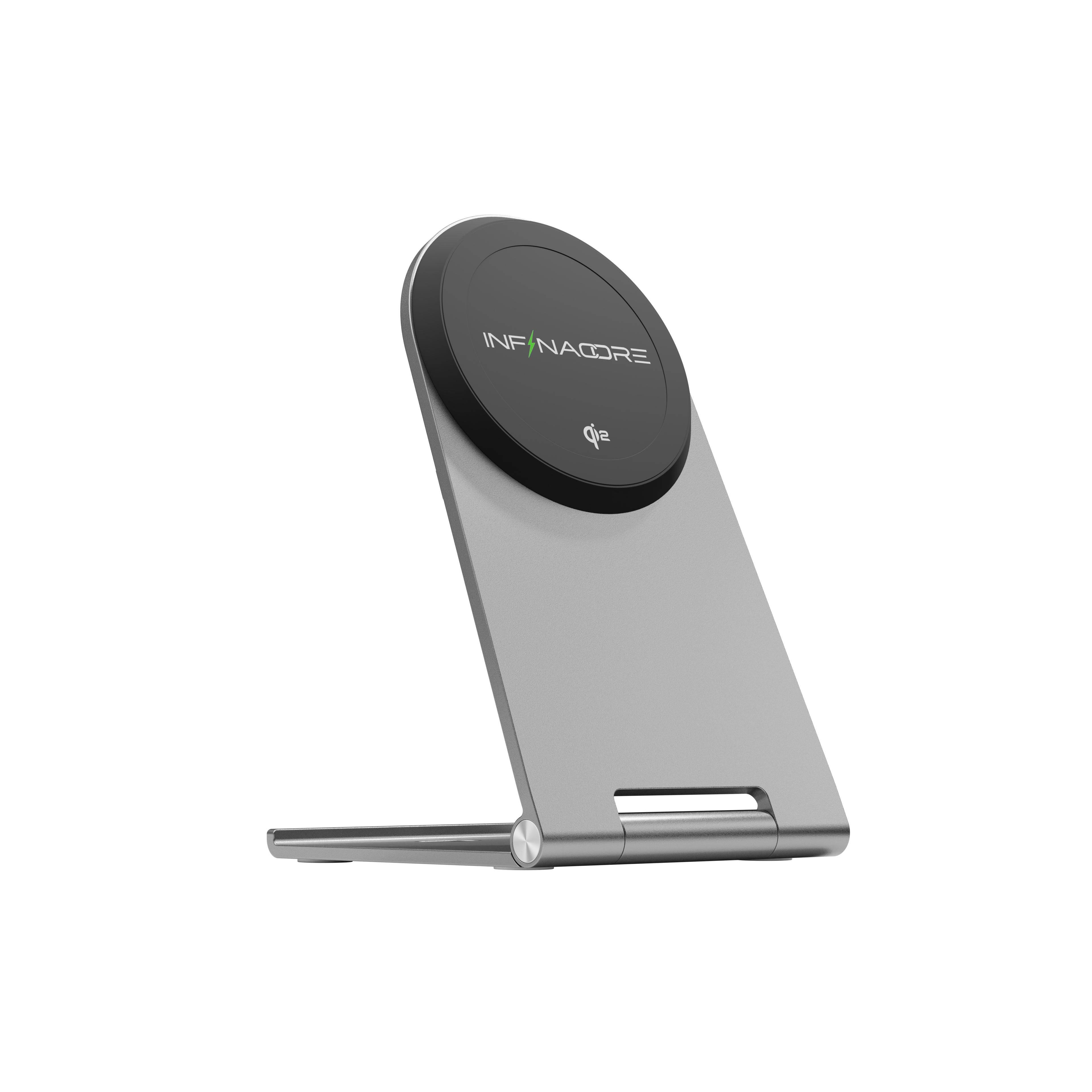Introducing T1: Foldable Qi2 Stand, the adjustable wireless charger for your facetime, shows, and meetings. With Qi2 fast wireless charging and a super strong magnet, this durable anodized aluminum body ensures a rust-free and premium finish. Get the perfect angle for your needs with the T1.