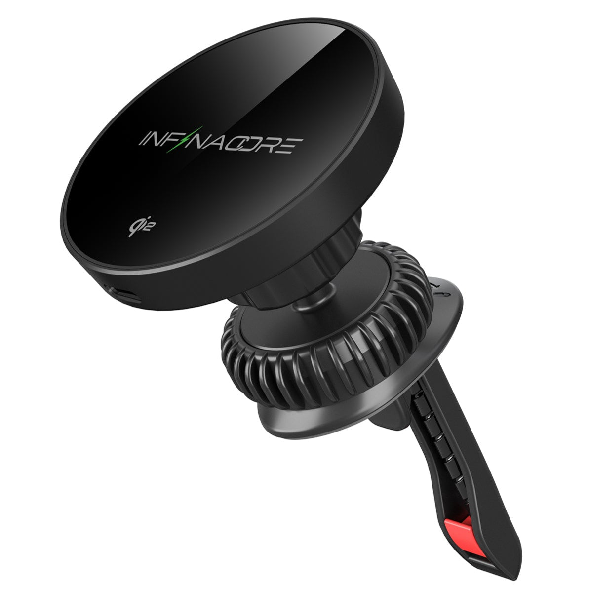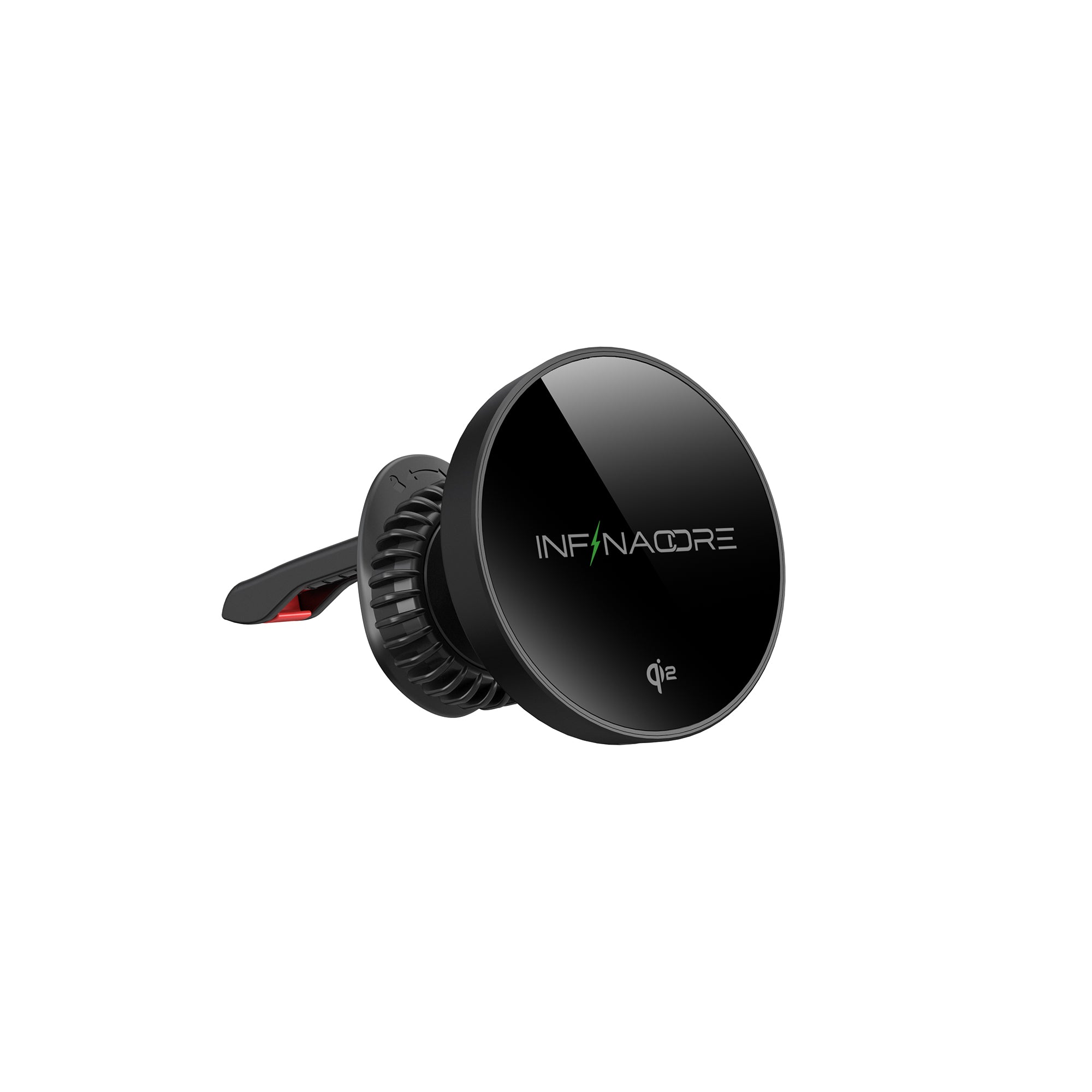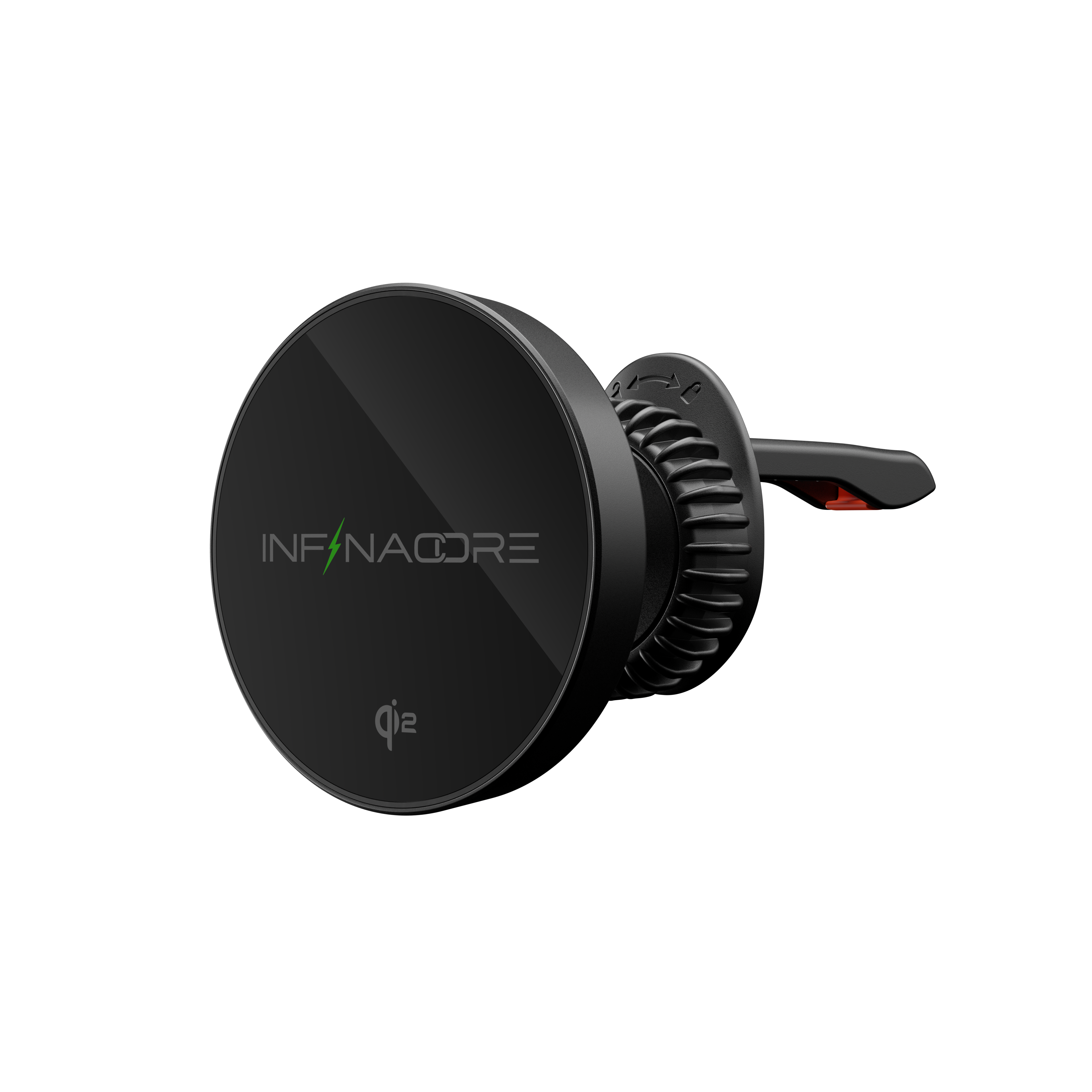 The InfinaCore C1 is a Qi2-compatible wireless car charger with a powerful MagSafe connection and a strong ratchet lock, ensuring your phone stays securely in place without slipping, even on bumpy roads. Its anti-scratch surface and heat-dissipating alloy deliver stable, efficient charging without the hassle of cords.