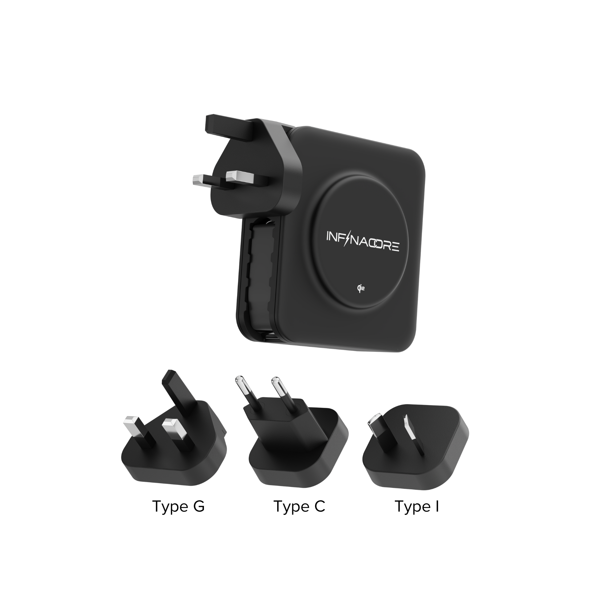 Universal Type G, Type C, and Type I adapters keep you powered in 140 countries.