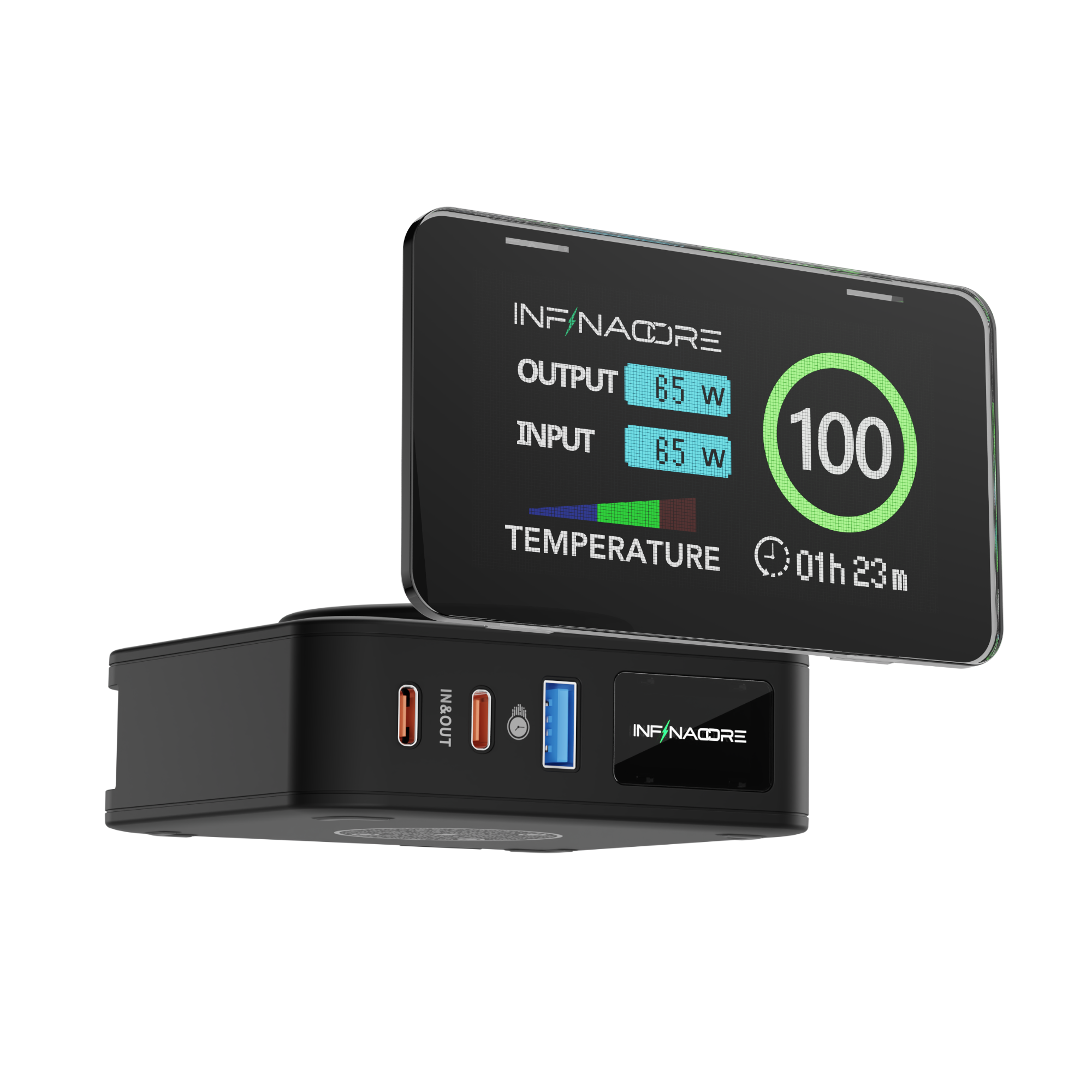 Rotating smart display delivers real-time power and charge insights at a glance.